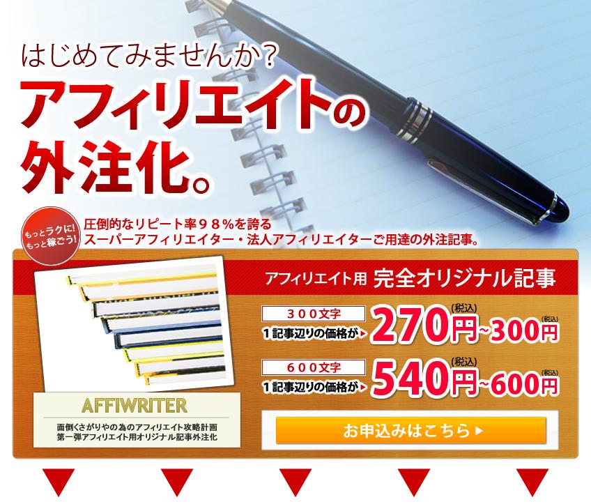 ▲アフィリエイト用ブログ記事外注化【アフィライター】
